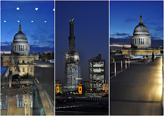 The southern area is relatively small and disappointing It has a quite tall and steeply angled glass wall, presumably to prevent you throwing yourself off in desperation. However, the northern section is something else altogether. Angular and sloping down towards St Paul’s, it really is quite dramatic. As you walk down towards the west, the focus of your attention really is the great dome of St P’s but there is so much more. The wall on this section is of a much more manageable height and, although you do get a view to the north the thing that really grabs you is the vista to the south.